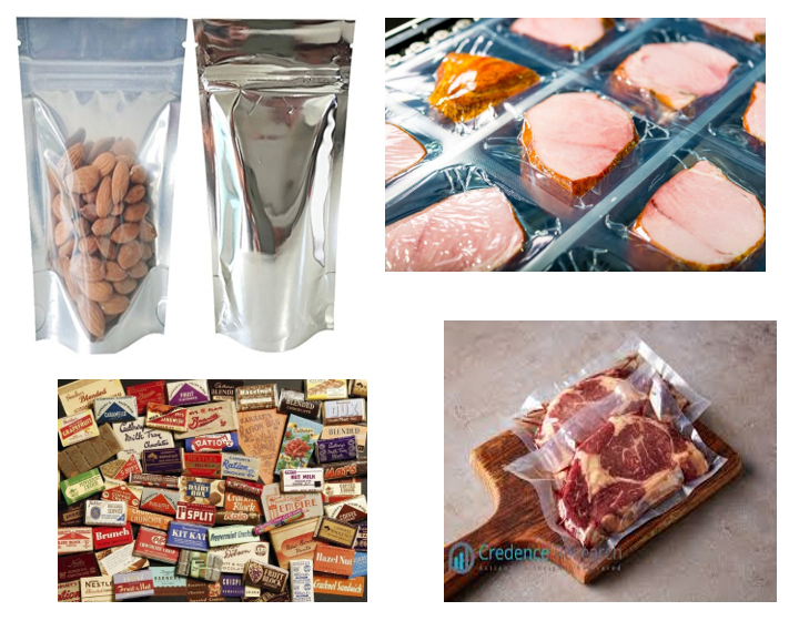 لایههای میانی : موادی با قابلیت سدگری بالا باشند که از نفوذ گازها و رطوبت جلوگیری میکنند. برای دستیابی به این ویژگیهای سدگری موثر، معمولاً از مواد زیر در لایههای مختلف استفاده میشود: